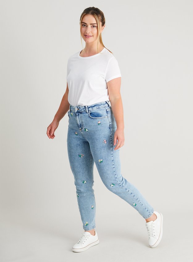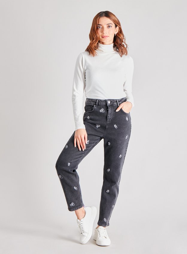 Mom Jeans With Embroidery